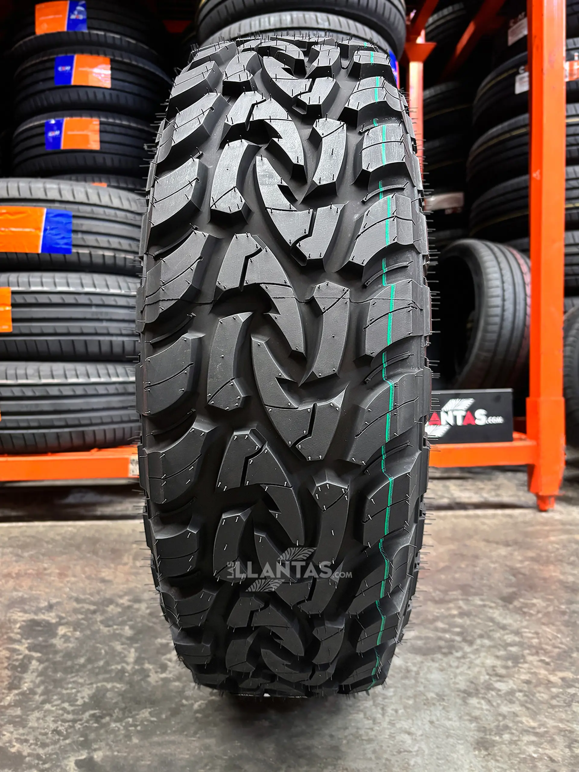 Diseño muy agresivo, espectacular a la vista y en rendimiento. Banda de rodamiento con tacos profundos y escalonados que brindan la mejor tracción y agarre en terrenos arduos con barro y rocas. Llanta 8 Lonas.