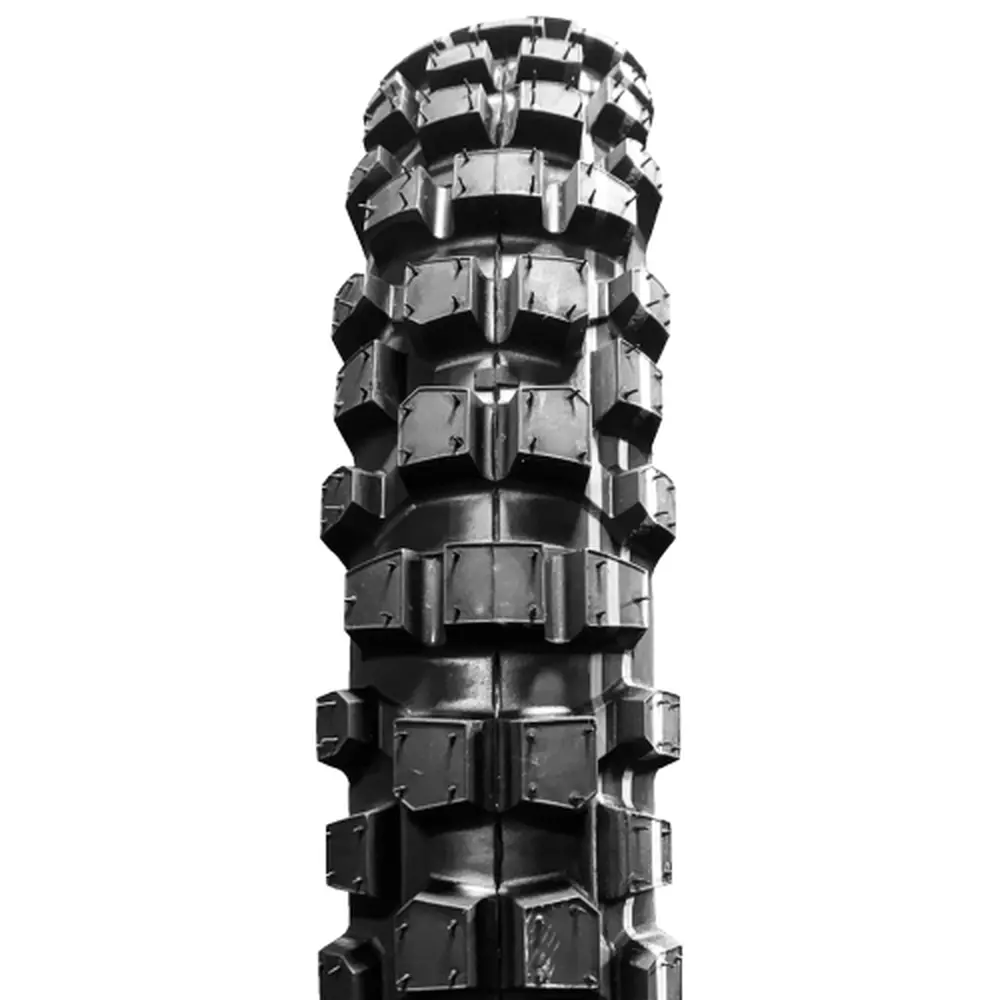 Ranuras amplias y tacos intercalados para aumentar la tracción y maniobrabilidad en destapado con tierra y piedras.